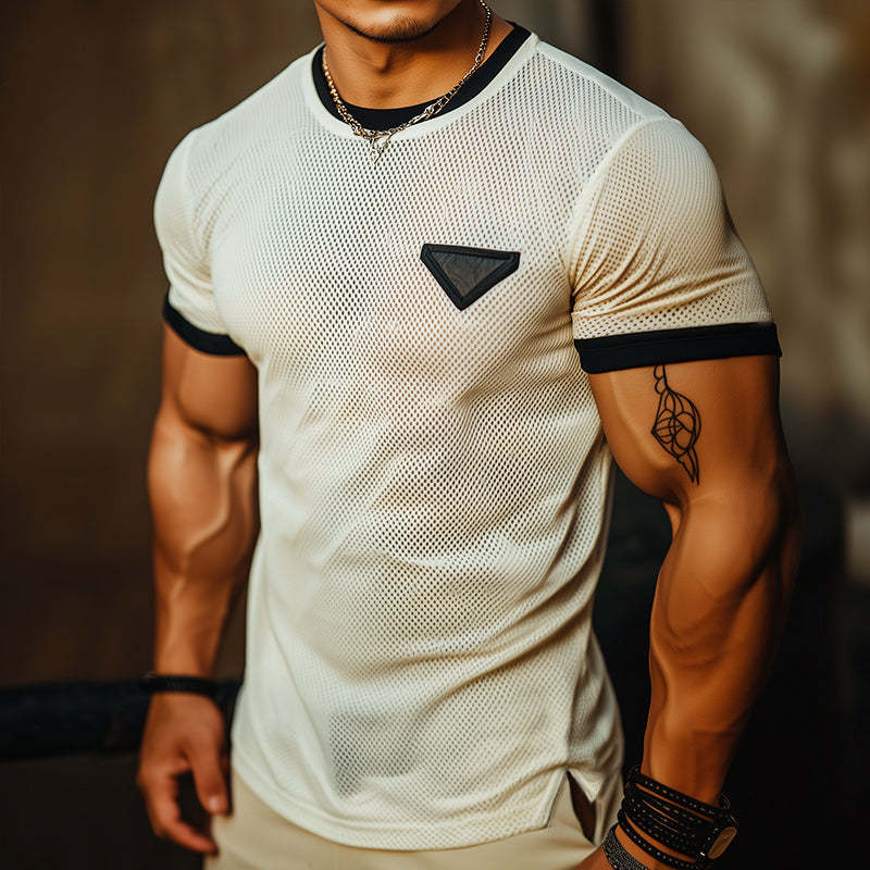 Product Name: Men's Retro Casual Mesh Fabric Color Block Round Neck Short Sleeve T-Shirt