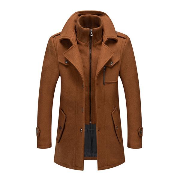 Woolen is a type of yard made from carded wool. Woolen yarn is soft, light, stretchy, and full of air. It is thus a good insulator, and makes a good knitting yarn. Our men's retro double collar woolen coat is made of soft woolen fabric, which protects you from light wind and rain. Added with multiple layers of thermal underwear, this wool-blend coat can provide extra warmth in cold weather.
