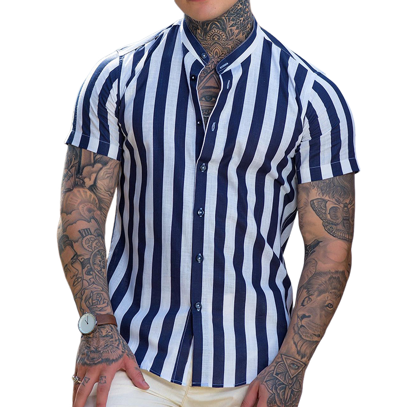 Description: Introducing our Men's Retro Stripe Print Linen Stand Collar Short Sleeve Shirt , a perfect combination of vintage charm and modern comfort. This shirt is designed for men who appreciate classic styles with a touch of contemporary flair, making it an ideal choice for casual outings, summer events, or any laid-back occasion.