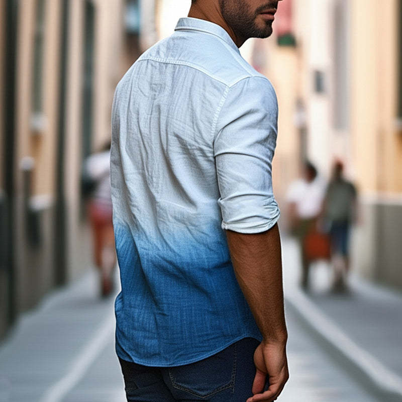 Men's Skin-friendly Blue Gradient Tie-Dye Cotton Casual Shirt