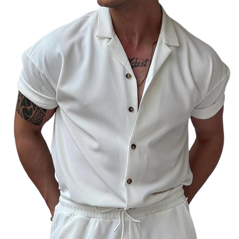 Crafted from high-quality cotton blend material, this shirt boasts a timeless design with subtle stripes accentuating the lapel, exuding sophistication suitable for various occasions. Soft, breathable, and comfortable to wear, it seamlessly transitions from formal to casual settings with ease.
