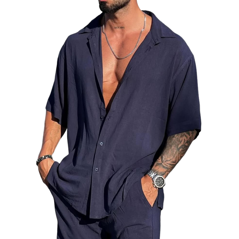 The Men's Solid Loose Lapel Short Sleeve Shirt is a staple piece for any modern man's wardrobe. Enjoy stylish comfort and a relaxed fit with this versatile shirt, perfect for any occasion!