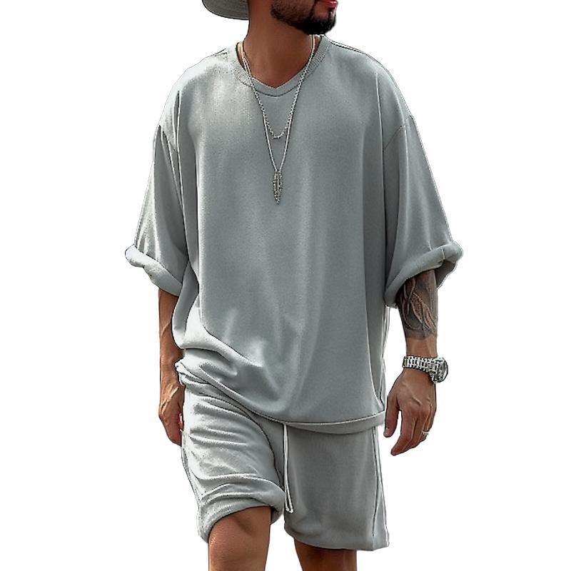 Elevate your casual wardrobe with our Men's Solid Loose V Neck Short Sleeve T-shirt Shorts Casual Set – a comfortable and stylish ensemble that effortlessly combines ease and fashion.