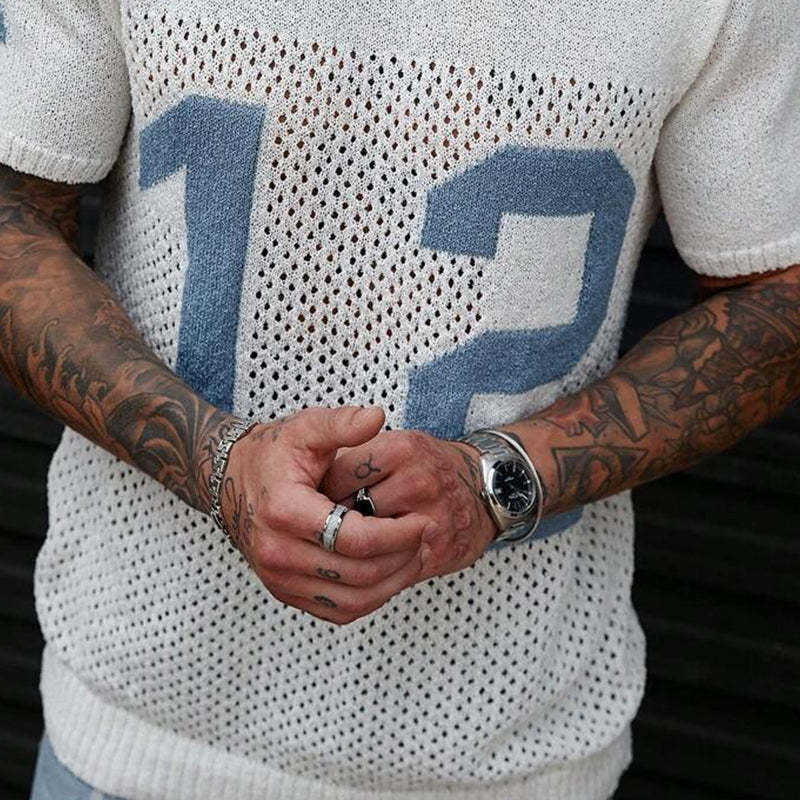 In summary, the Men's Sport Lettering Jacquard Crew Neck Short Sleeve Sweater T-Shirt is a versatile and chic piece that brings together sportiness and sophistication. Whether dressing up for a night out or heading to a casual meet-up, this sweater ensures you stay comfortable and stylish.
