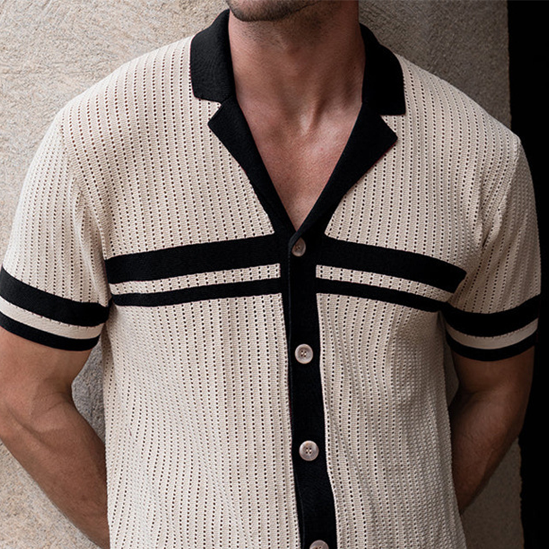 the Men's Spring and Summer Casual Contrast Color Stitching Knitted Short Sleeve Shirt, a stylish and comfortable choice for warmer days. This shirt effortlessly combines modern design with practicality, making it an essential addition to your spring and summer wardrobe.