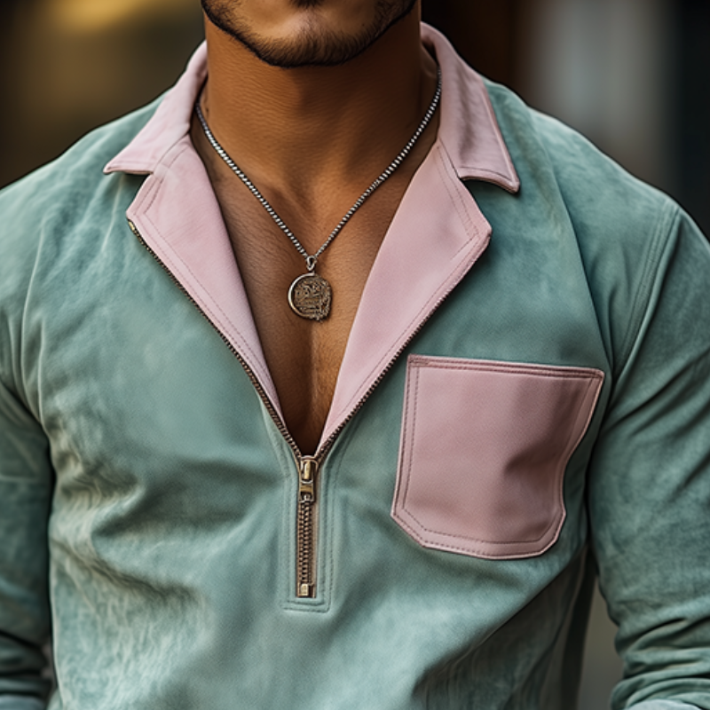 Introducing the Men's Spring Fashion Casual Contrast Color Stitching Lapel Zipper Suede Long Sleeve Shirt, a perfect blend of modern style and comfort for the spring season. This shirt features a unique lapel design paired with contrast color stitching, creating a fashionable and versatile piece suitable for various occasions. Made from high-quality suede, this shirt not only offers a luxurious feel but also ensures durability and comfort for everyday wear.