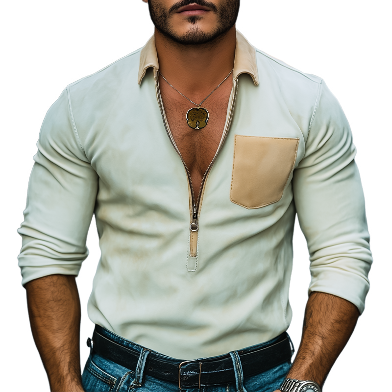 Introducing the Men's Spring Fashion Casual Deep V Neck Zipper Suede Long Sleeve Shirt, the perfect blend of contemporary style and comfort for the spring season. This shirt features a bold deep V neck design and a convenient zipper closure, making it a standout piece for those looking to elevate their casual wardrobe. Crafted from luxurious suede, this long sleeve shirt is designed to keep you comfortable while offering a sophisticated look for a variety of occasions.
