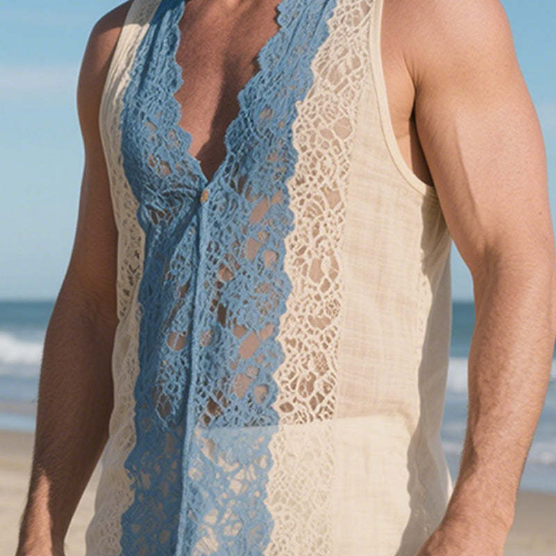 Product Name: Men's Spring Fashion Lace Splicing Thin Tank Top