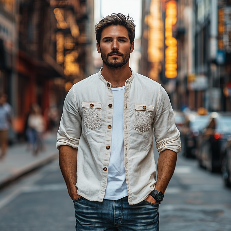The Men's Spring Fashion Personalized Lace Pocket Stitching Cotton and Linen Long Sleeve Shirt is a must-have piece for any stylish man's wardrobe. With its blend of high-quality materials, unique lace detailing, and comfortable fit, this shirt is designed to keep you looking polished while enjoying the charm of spring. Embrace elegance and individuality with this versatile and fashionable shirt!
