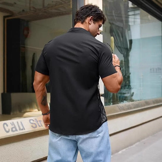 Product Name: Men's Spring Fashion Sexy Lace Slim Short Sleeve Shirt
