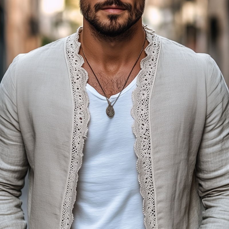 Introduce a touch of vintage charm to your spring wardrobe with our Men's Spring New Retro Casual Ethnic Style Lace Stitching Cotton and Linen Cardigan. This versatile cardigan combines traditional design elements with modern comfort, making it an ideal layering piece for various occasions.