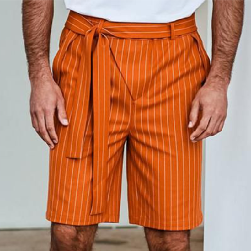 Product Name: Men's Spring/Summer Fashion Striped Casual Knee-Length Shorts (Belt Included)