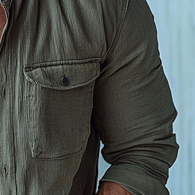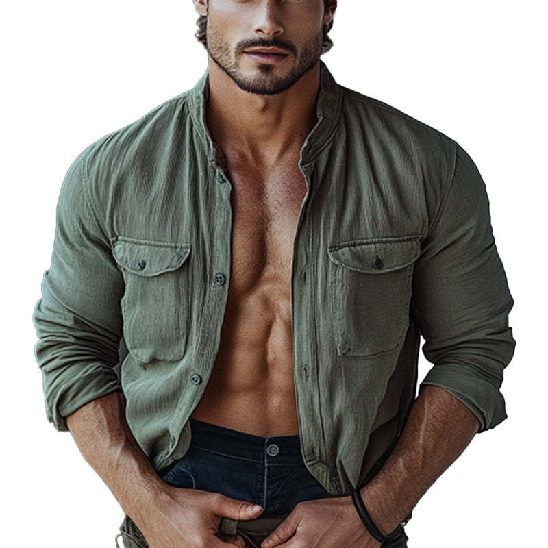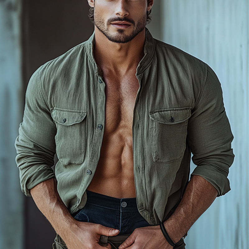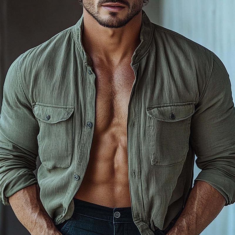 Introducing the Men's Striped Textured Stand Collar Long Sleeve Shirt, a perfect blend of modern style and timeless sophistication. This shirt features a unique textured fabric with subtle striped patterns, adding depth and visual interest to your outfit. The stand collar design offers a contemporary twist, making it a versatile piece suitable for both casual and semi-formal occasions. Crafted from high-quality, breathable fabric, this long-sleeve shirt ensures all-day comfort while keeping you stylish and polished. you're heading to the office, a social event, or a casual outing, this shirt is a must-have addition to your wardrobe.