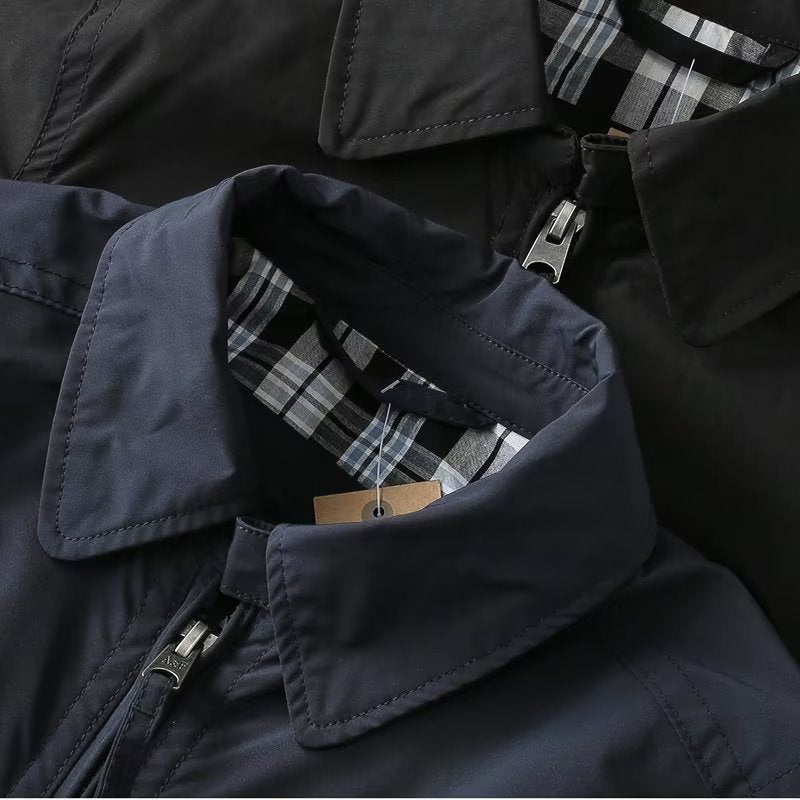 • Design Elements: Embroidered sleeve patch, plaid lining, sleek zipper closure