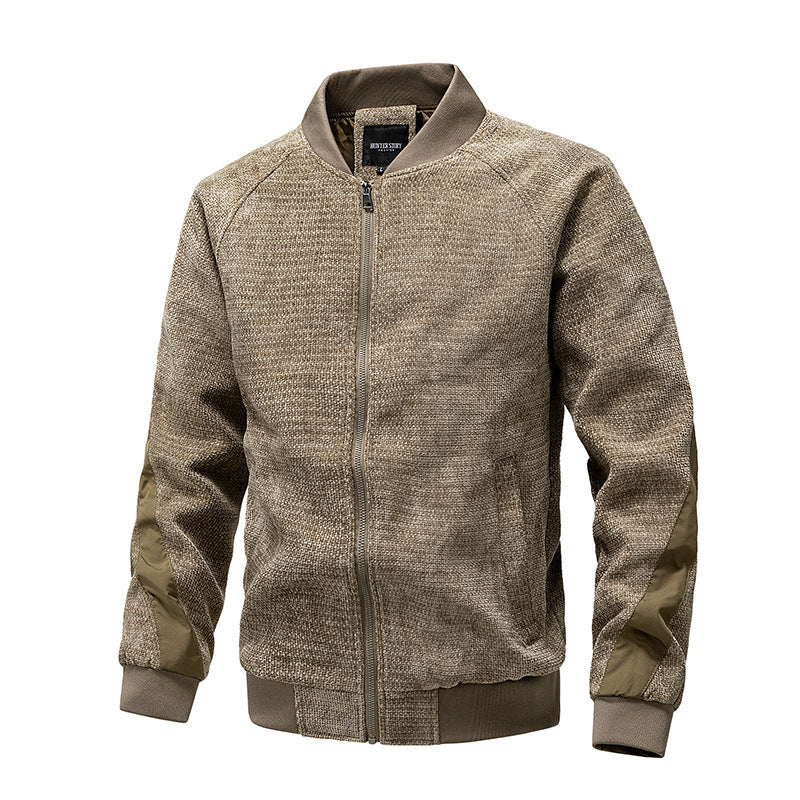 • Design Elements: Contrasting sleeve panels, ribbed cuffs and hem, front zipper closure