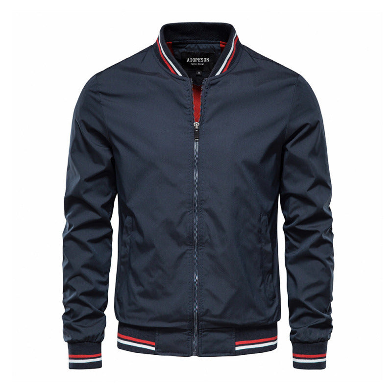 • Design Elements: Contrast trim on collar and cuffs, sleek zipper closure, modern fit