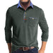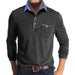 • Design Elements: Contrast collar, chest pocket with button closure, button-down placket