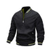• Design Elements: Contrasting red and white stripes on cuffs and collar, sleek zipper closure