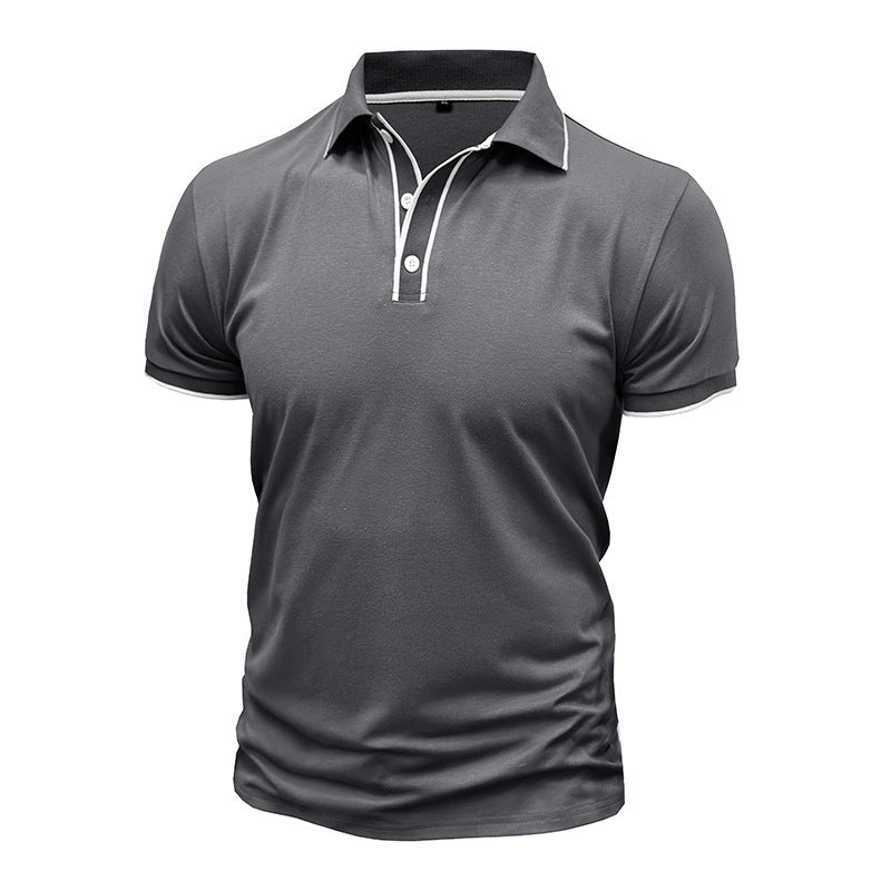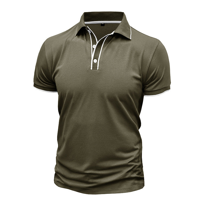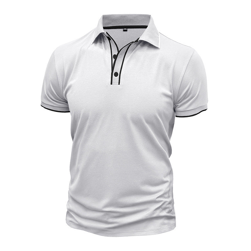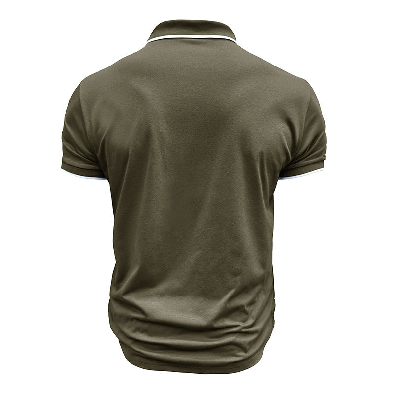 • Design Elements: Contrast white collar and sleeve edges, buttoned placket