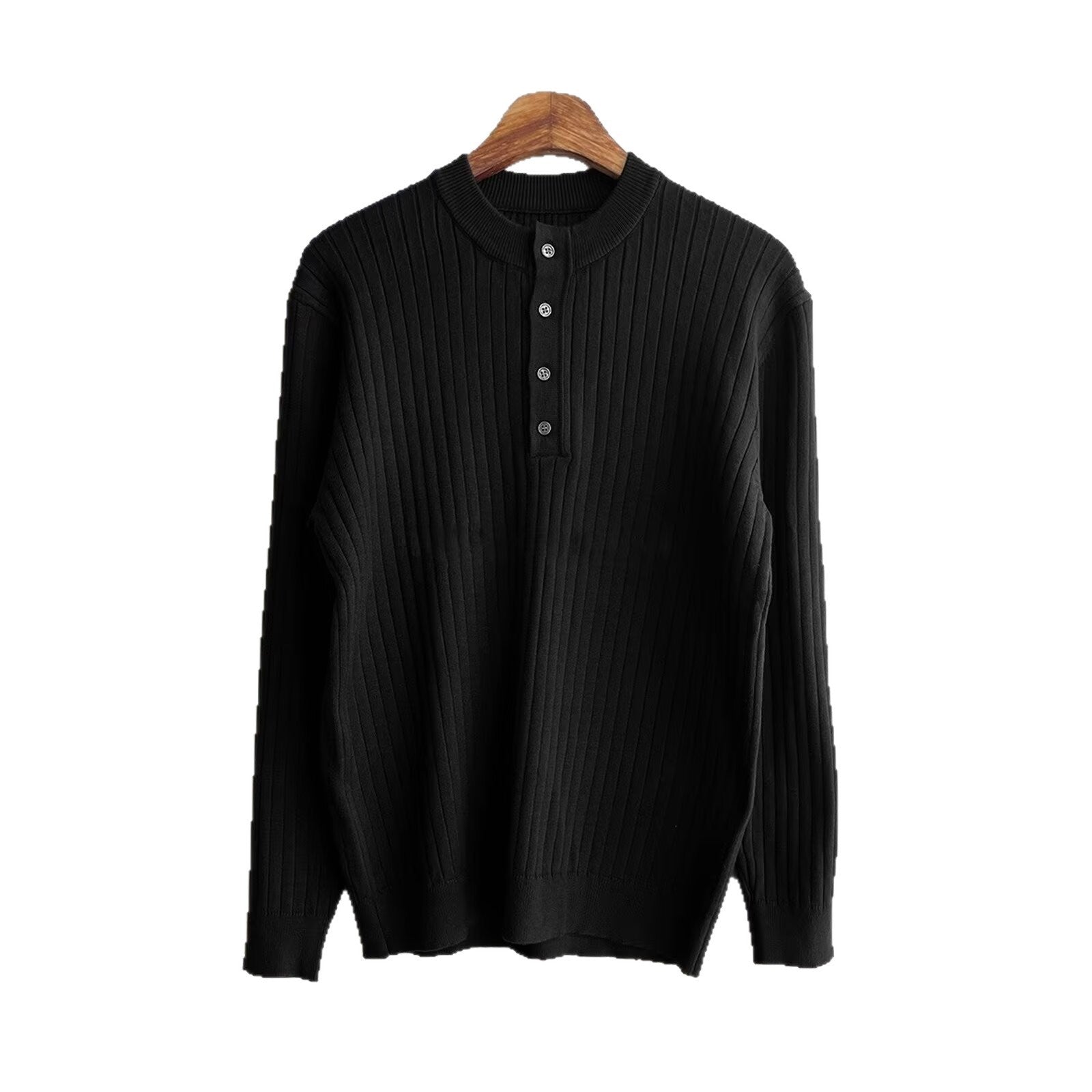 • Design Elements: Vertical ribbed texture, buttoned placket, classic henley collar