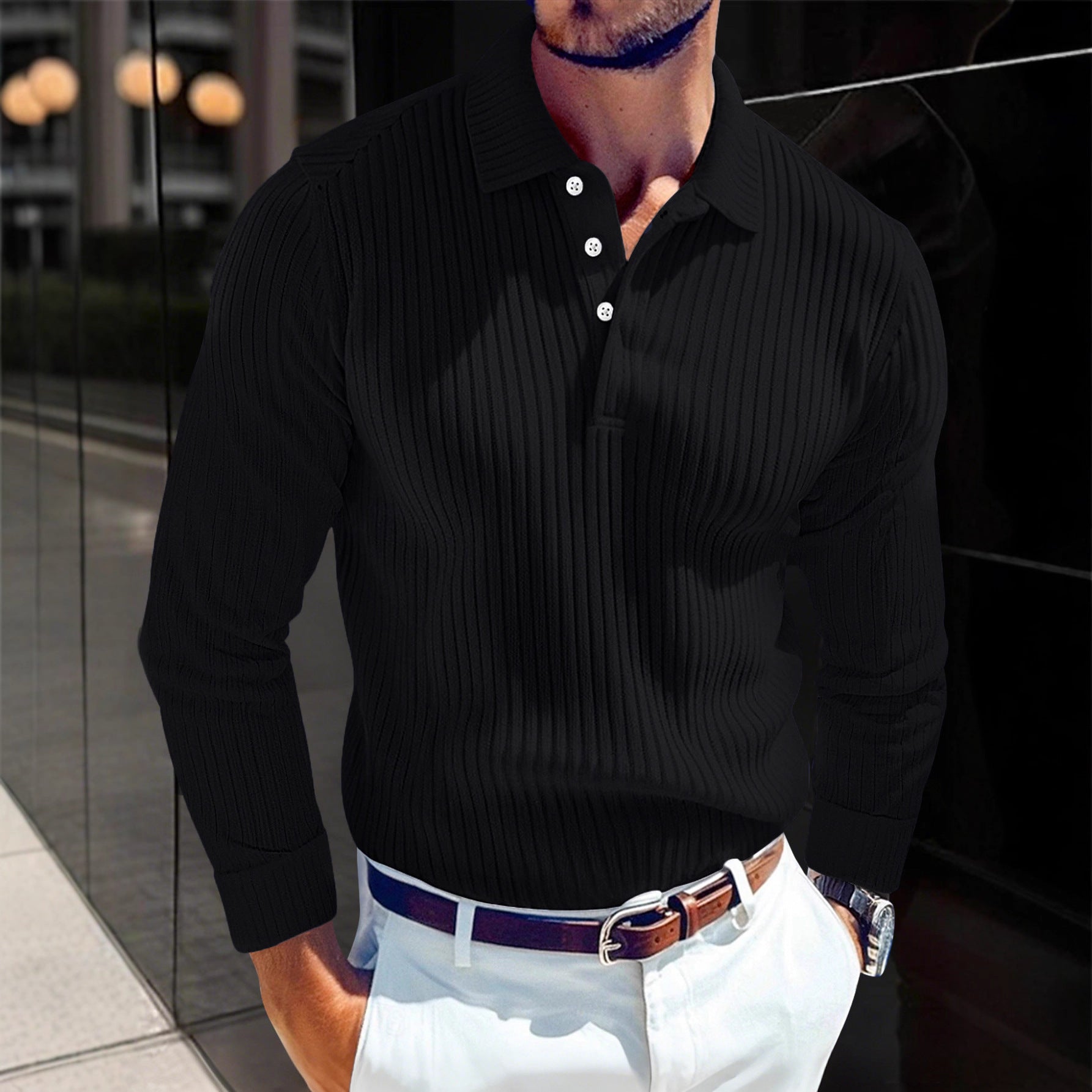 • Design Elements: Vertical ribbed texture, buttoned placket, sleek collar design