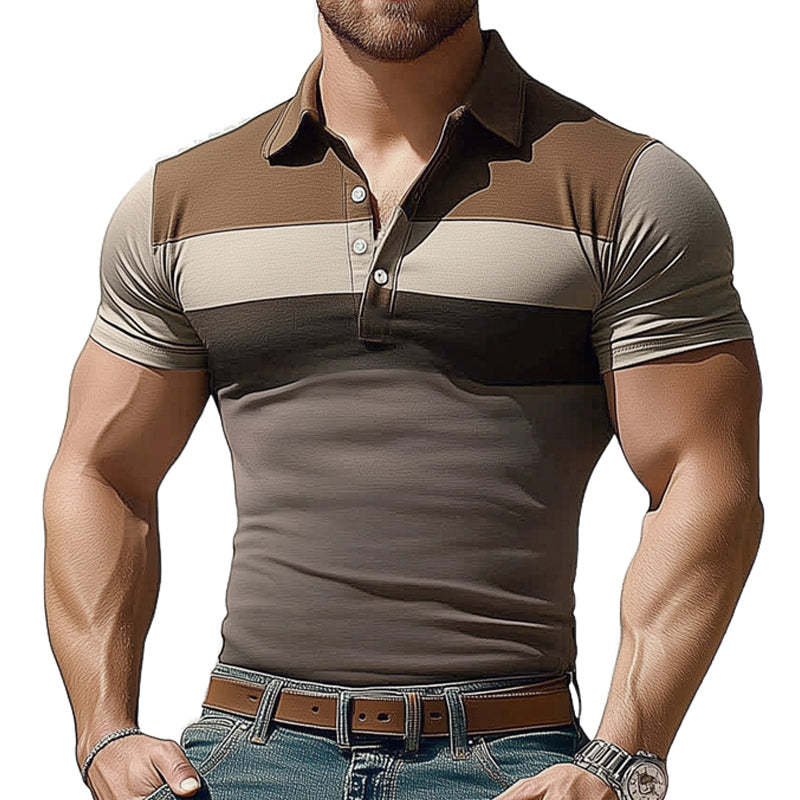 Men's Summer Comfortable Stretch Polo Neck Colorblock T-Shirt