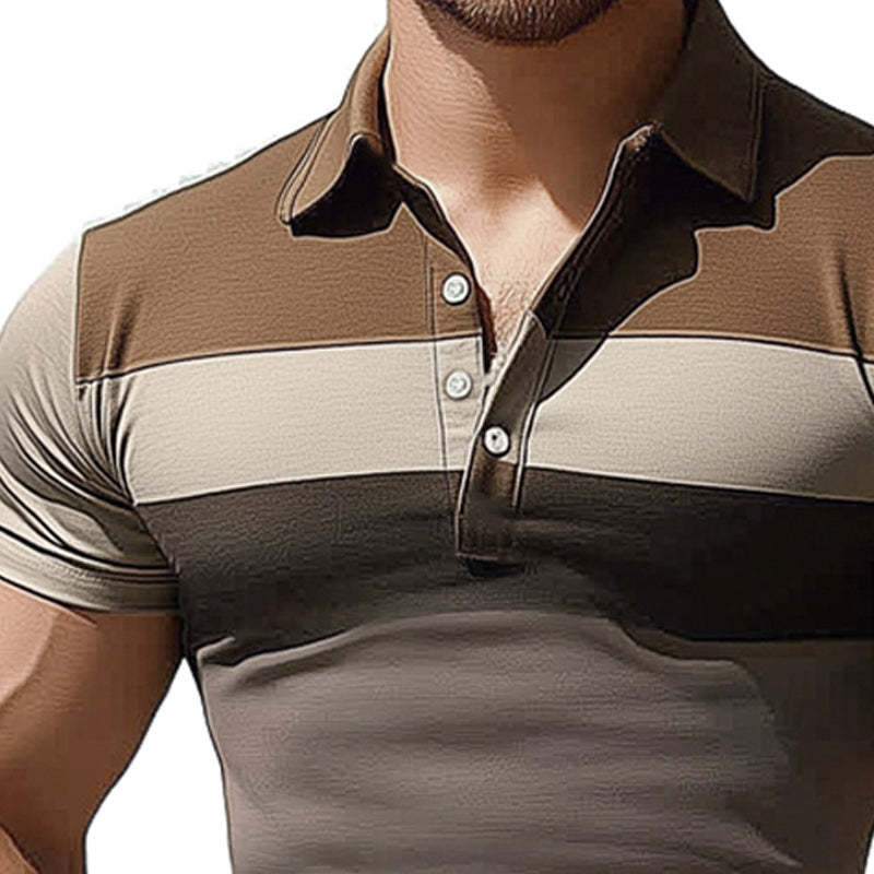 Experience the perfect balance of style and comfort with the Men's Summer Comfortable Stretch Polo Neck Colorblock T-Shirt—an essential addition to your summer wardrobe!