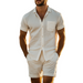Product Name: Men's Summer Fashion Casual Slim Fit Silk Cotton Short Sleeve Shirt Pocket Shorts Set