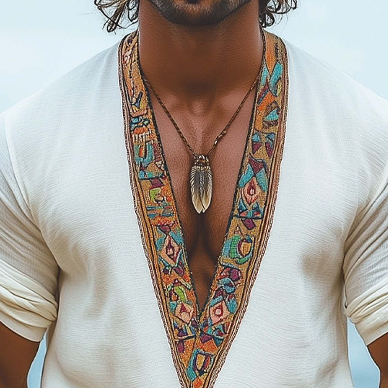 The Men's Summer V-neck Retro Embroidery Casual Long Sleeve T-shirt is perfect for those who appreciate retro style with a modern twist. Its unique embroidery and comfortable fit make it a versatile piece for any summer wardrobe.