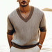 The Men's Summer V-neck Thin Knitted Short-sleeved T-shirt,is a must-have for any wardrobe. This T-shirt combines style and comfort, making it perfect for the warm summer months. Designed with a sleek V-neck and short sleeves, it is crafted from a lightweight, breathable knitted fabric that ensures you stay cool and comfortable all day long.