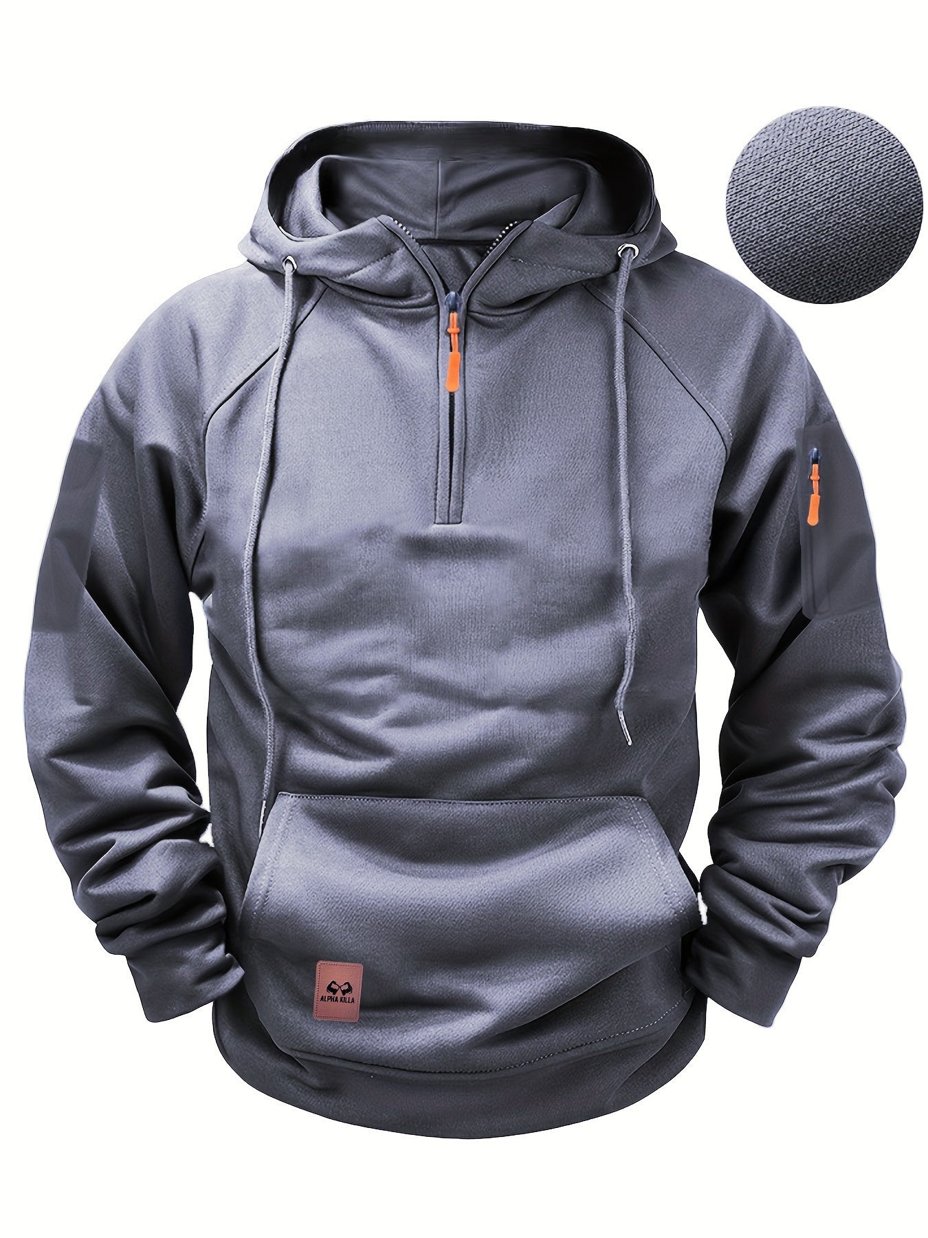 • Design Elements: Half-zip closure, adjustable hood drawstrings, zippered arm pocket