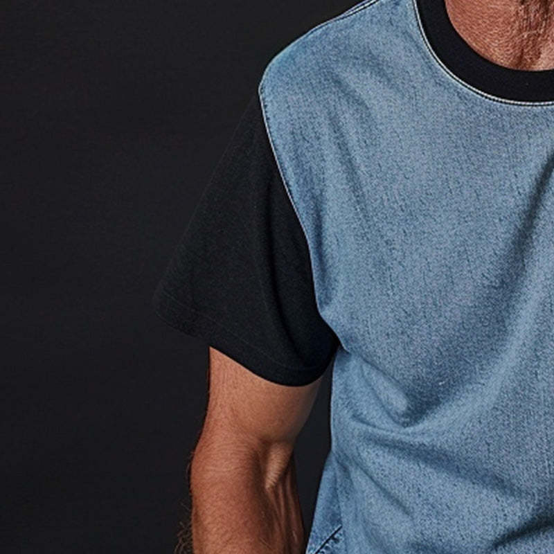 Product Name: Men's Thin Denim Patchwork Round Neck Short Sleeve T-Shirt
