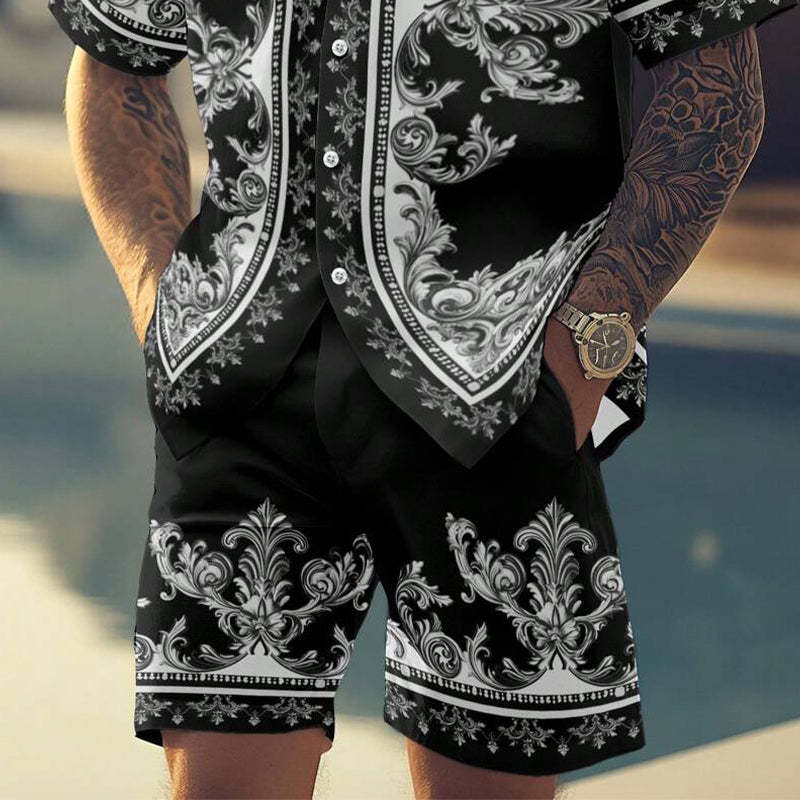 Product Name: Men's Vacation Cashew Flower Print Short-sleeved Shorts Two-piece Set