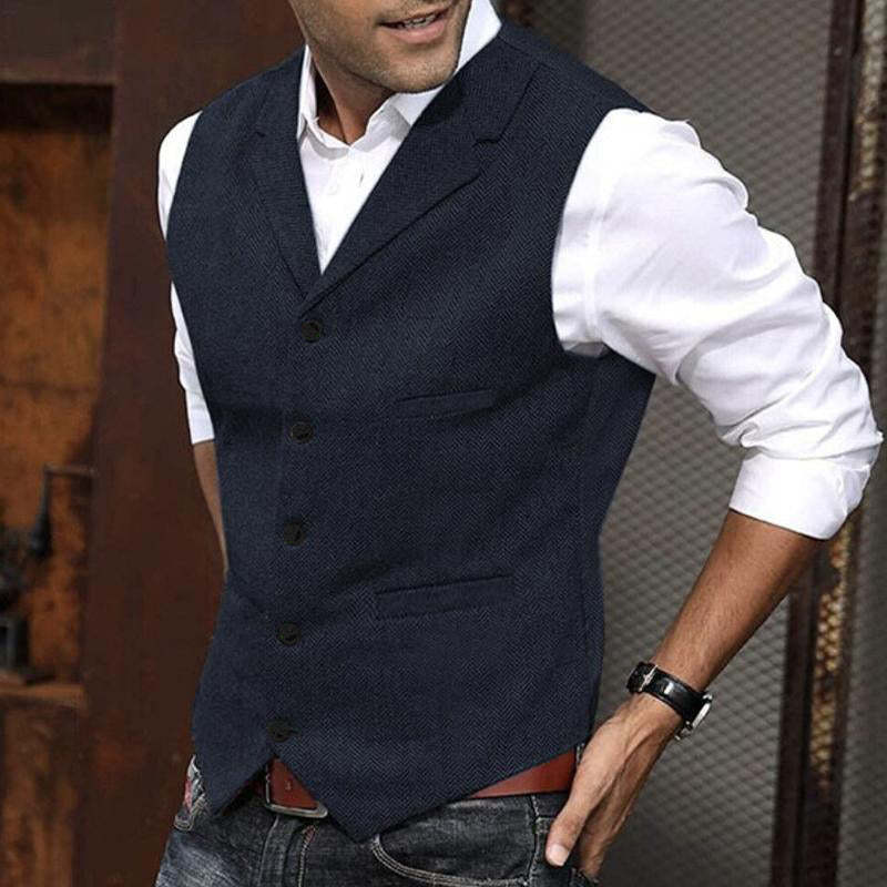 Upgrade your wardrobe with this timeless men's vintage herringbone lapel single breasted slim vest. With a classic herringbone pattern and lapel collar, this vest offers a timeless silhouette that will never go out of style.