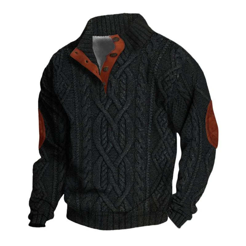 Men's Vintage Stand Collar Knitted Cable Sweater