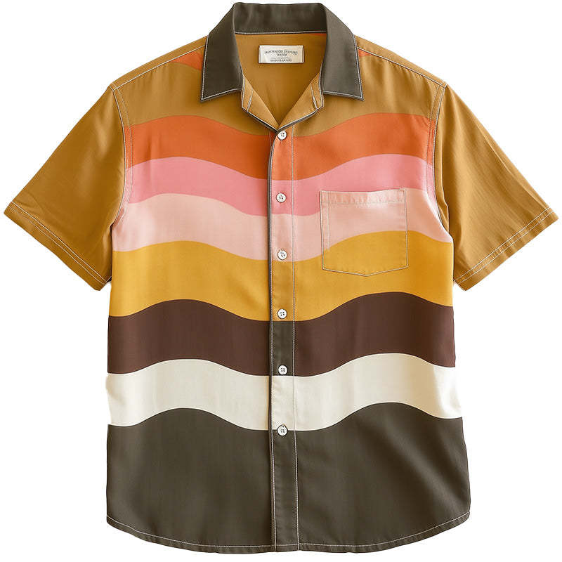 Product Name: Men's Wave Stripe Print Short Sleeve Shirt