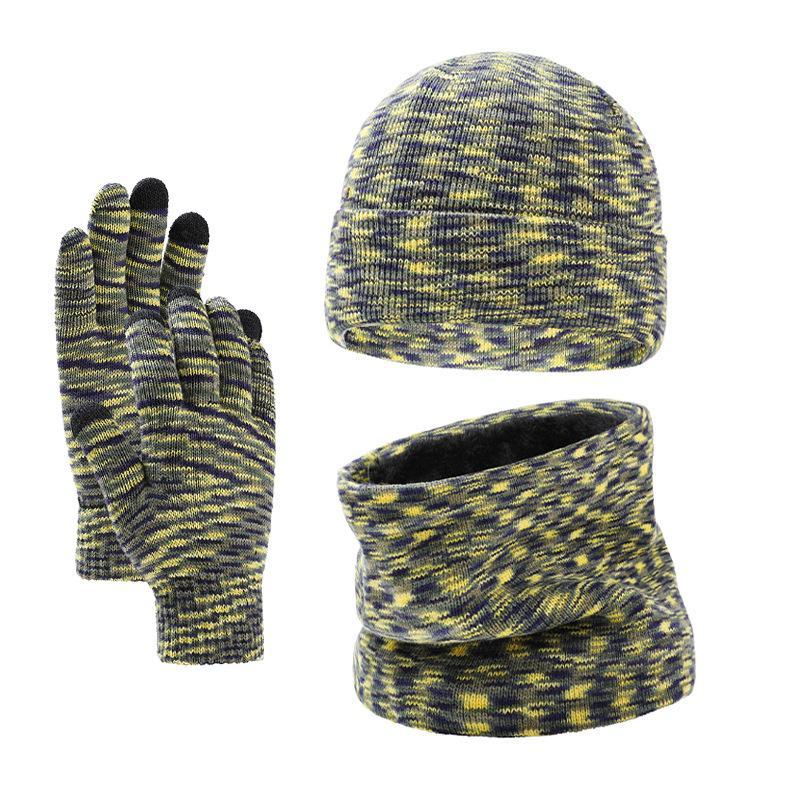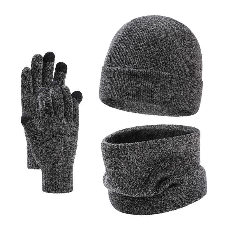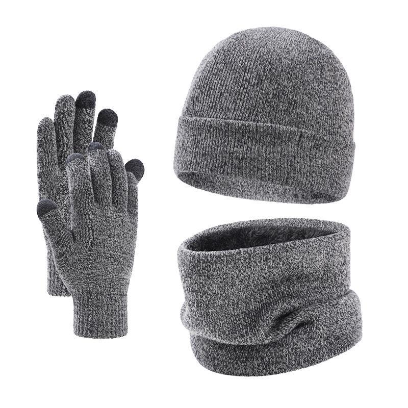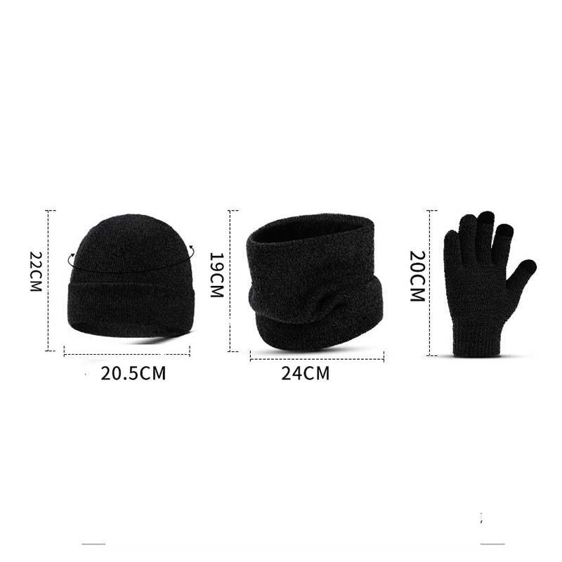 Men's Winter Plus Velvet Hat, Scarf & Gloves Three-Piece Knitted Hat