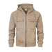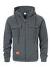 • Design Elements: Two zippered chest pockets, adjustable drawstring hood, front zipper closure