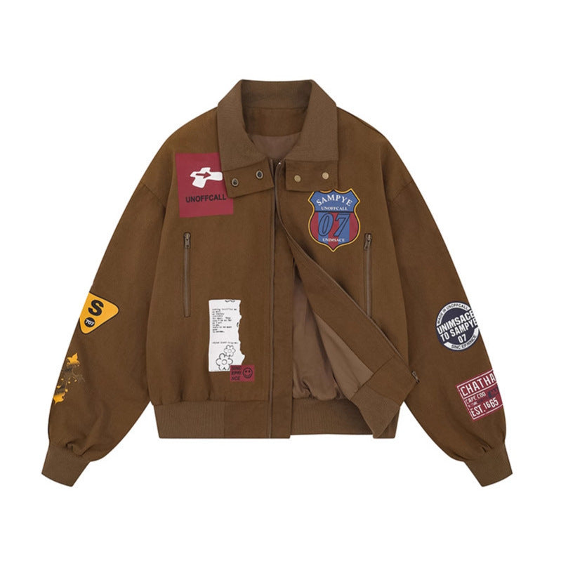 • Design Elements: Embroidered patches, sleeve badges, chest pocket