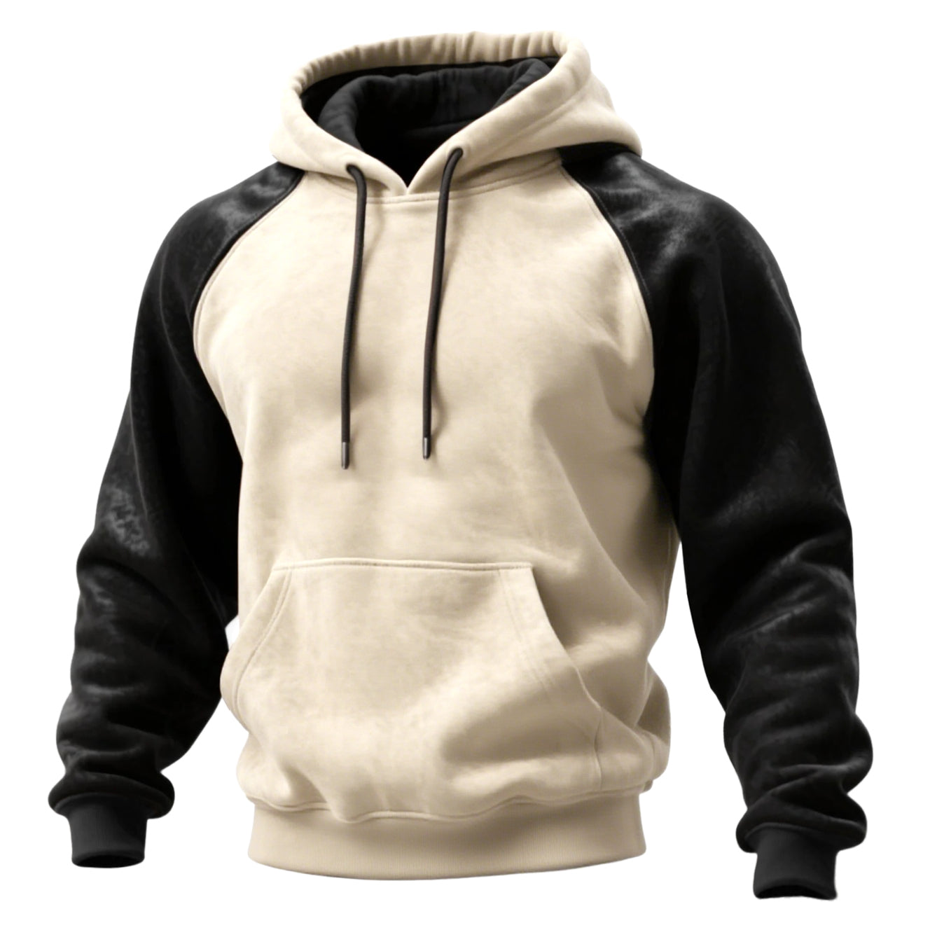 • Design Elements: Contrast color sleeves, front pocket, and drawstring hood