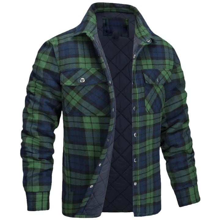 • Design Elements: Classic plaid pattern, quilted inner lining, button-down front closure