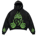 • Design Elements: Intricate skull and lightning graphic print, bold hooded design