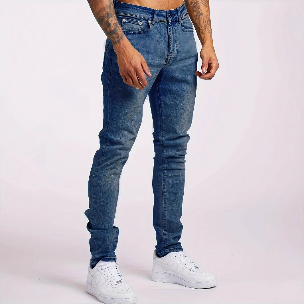 • Design Elements: Sleek black color, slim fit design, white sneakers complement