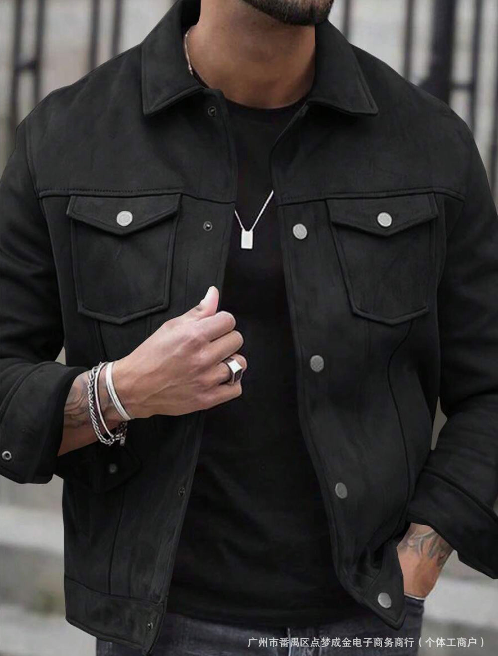• Design Elements: Two front chest pockets with snap buttons, a classic collar, and a sleek silhouette