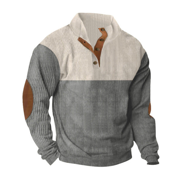 • Design Elements: Half-zip closure with decorative buttons, color-block design, and elbow patches