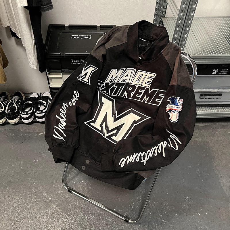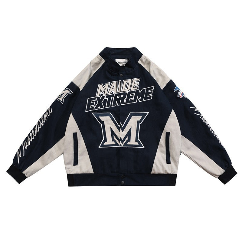 • Design Elements: Large Letter Print, Embroidered Logo Patch, Contrasting Color Panels