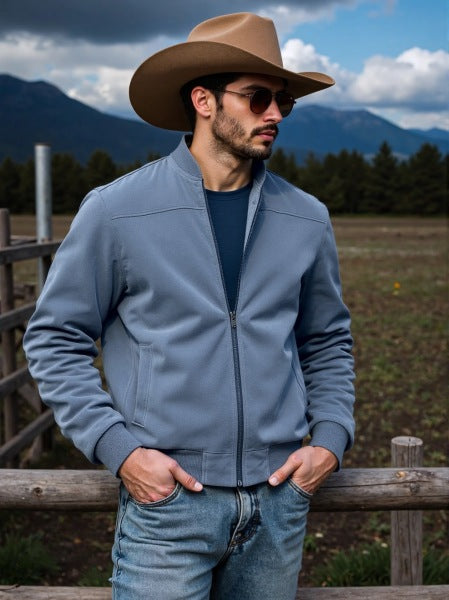 • Design Elements: Classic cowboy hat paired with a sleek bomber jacket