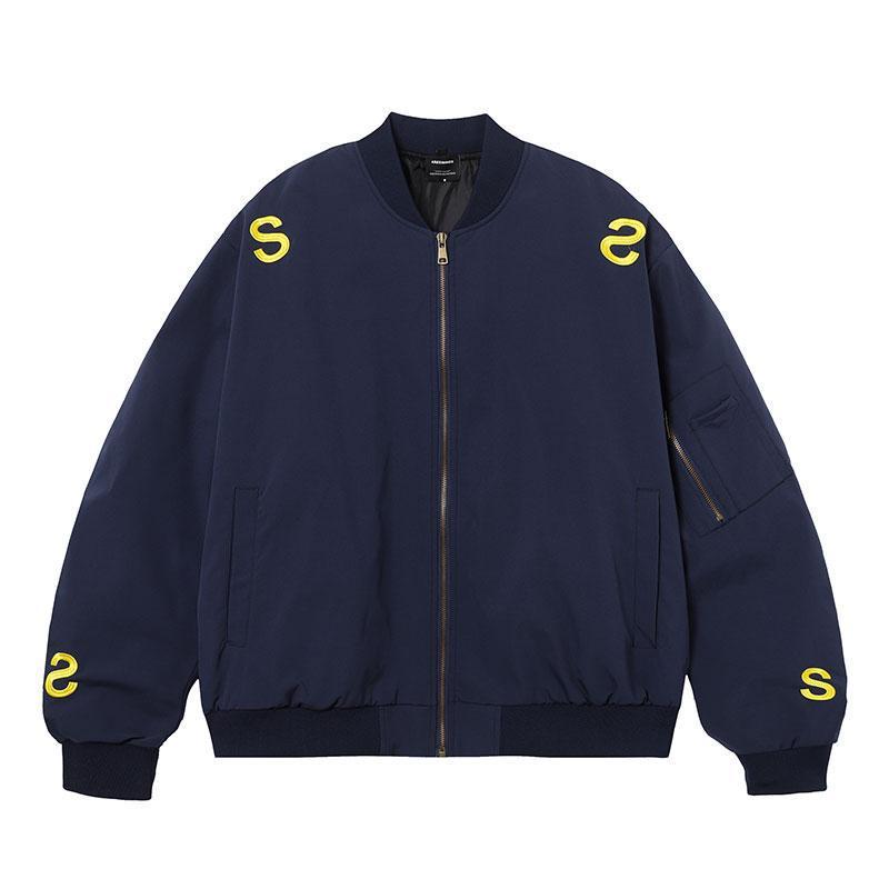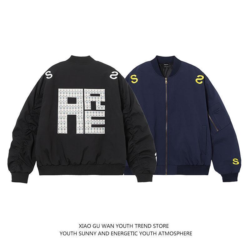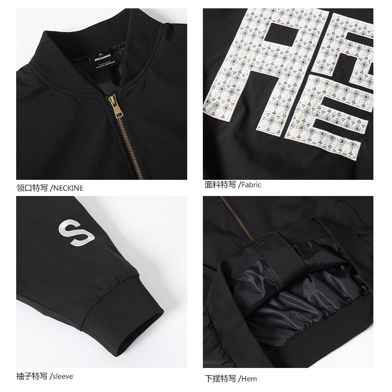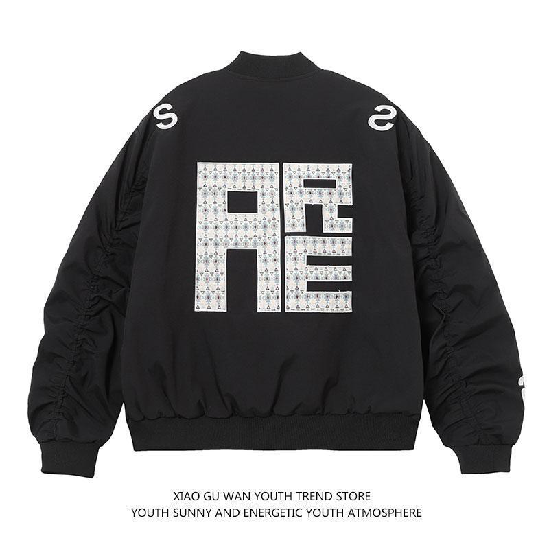 • Design Elements: Large embroidered letters on the back, bold shoulder lettering, stylish ribbed cuffs
