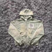 • Design Elements: Embroidered heart patterns on sleeves, decorative patch on chest, hood with printed text