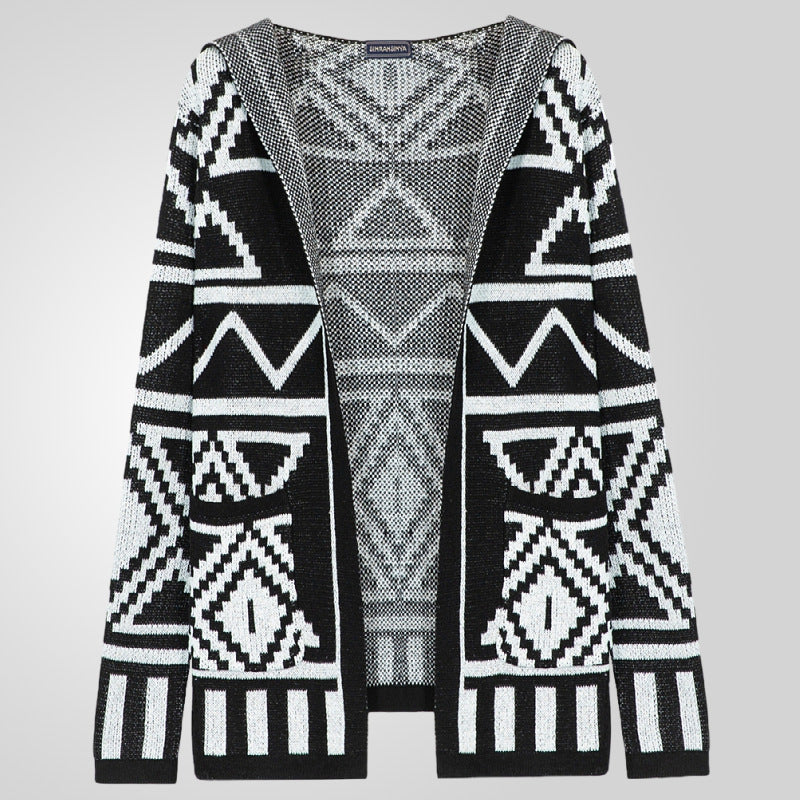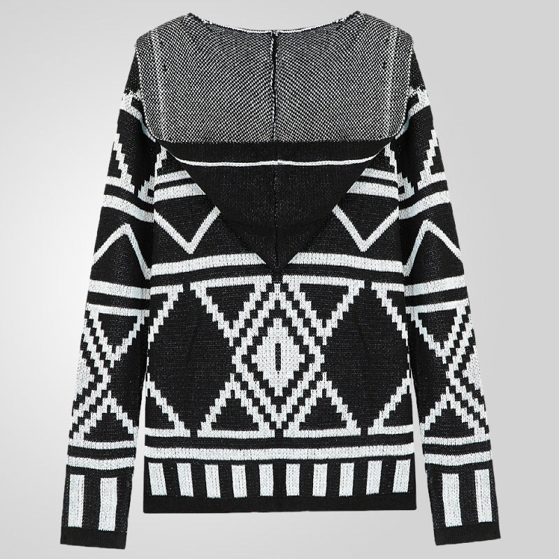 • The striking geometric patterns make this cardigan a standout piece in any wardrobe.